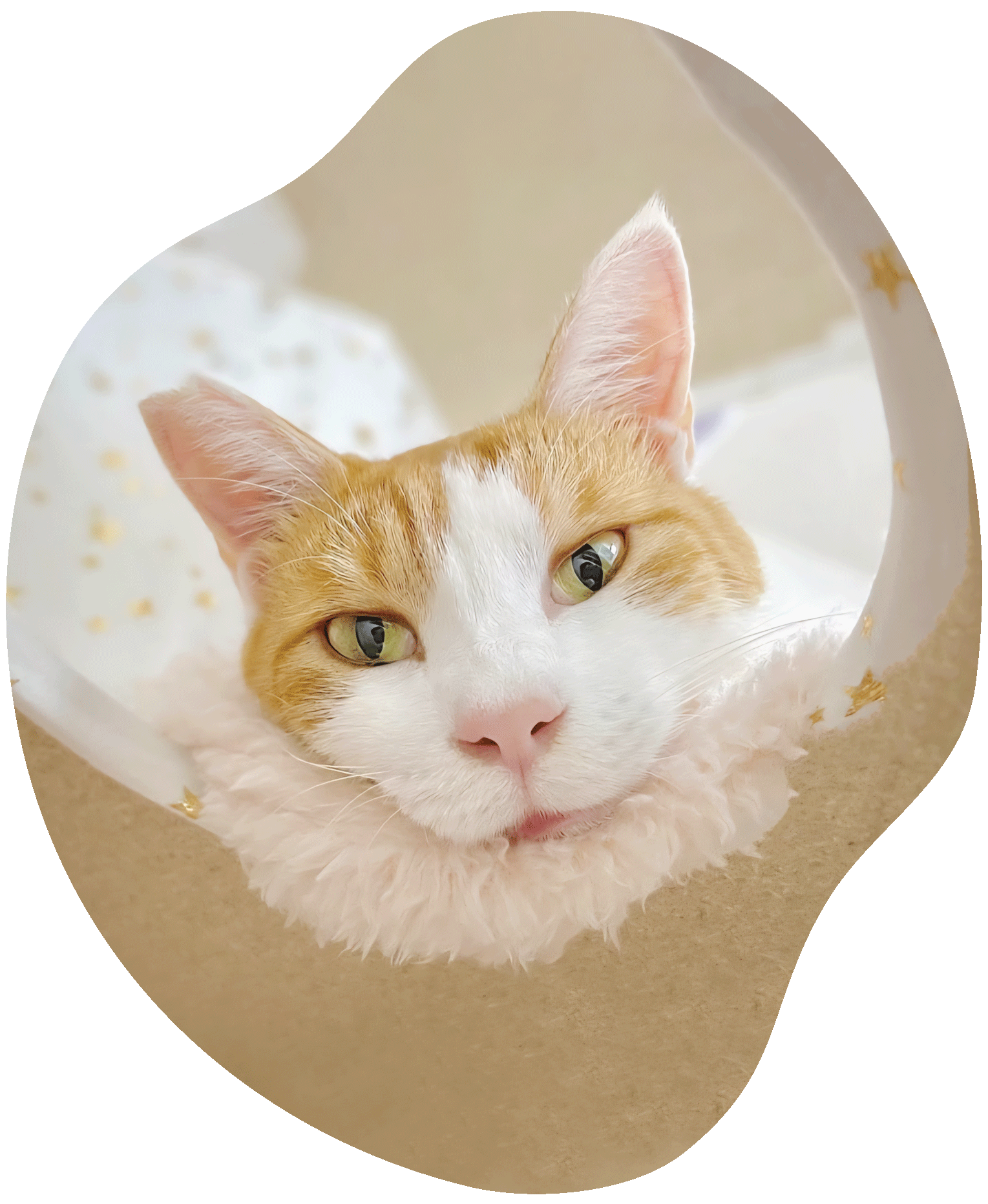 現在、一緒に暮らしている猫の桃乃ちゃんです。2024年年末に引っ越し後、縁があり、大阪府の保護施設から里親として引き取らせていただき家族になりました。