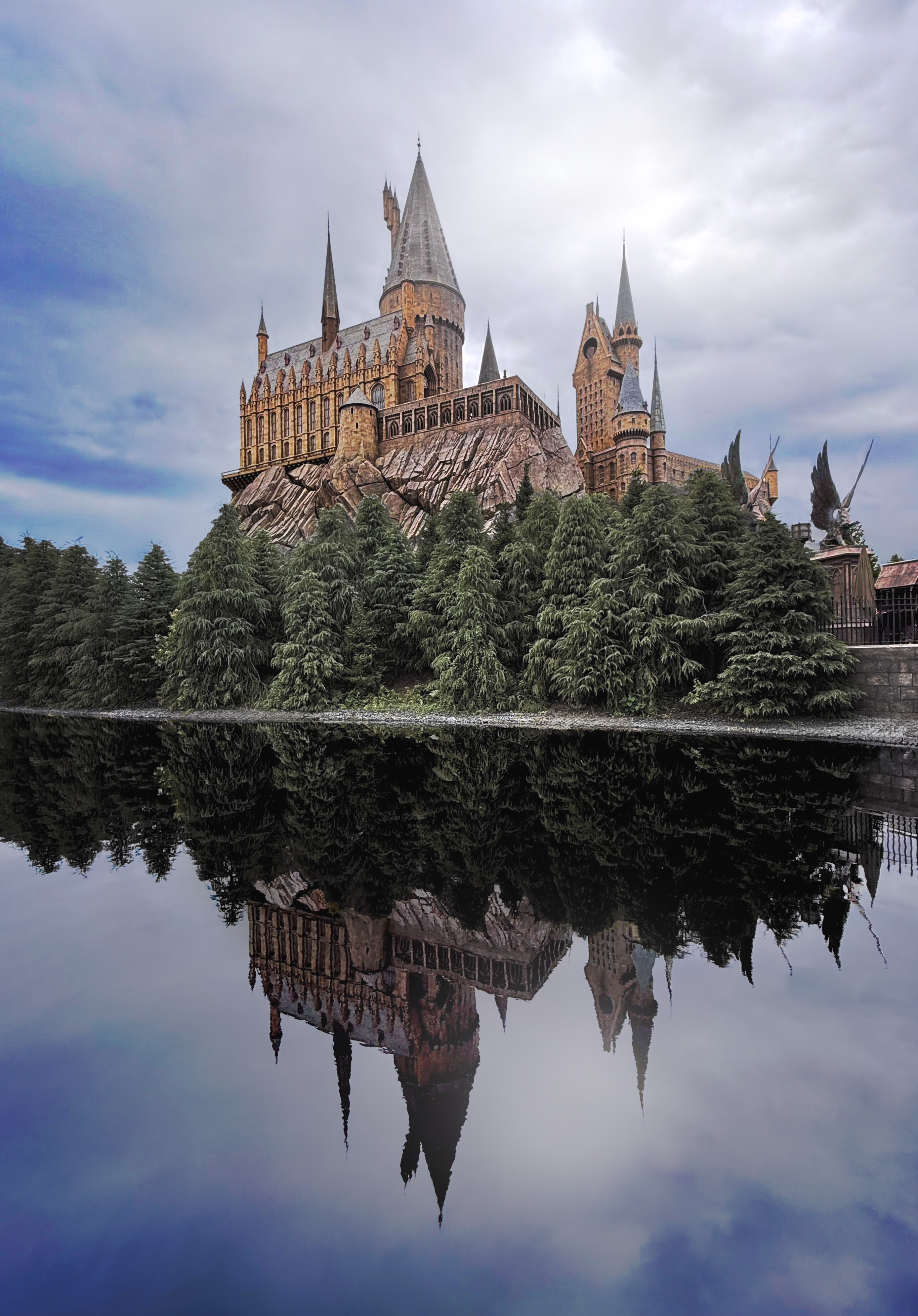 USJ "Harry Potter" のアトラクションの人気の撮影スポット。魔法学校の世界観に似合わせる為、彩度をやや落とし気味で調整しています。